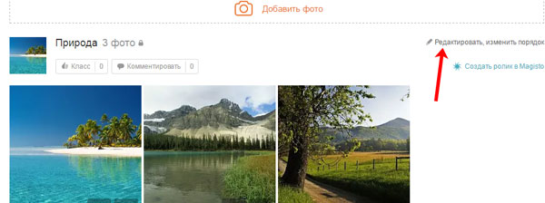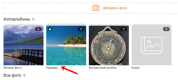 Для прикладу, загружу в Однокласники на свою сторінку зображення з природою. Відповідно і назва альбому в мене буде «Природа».