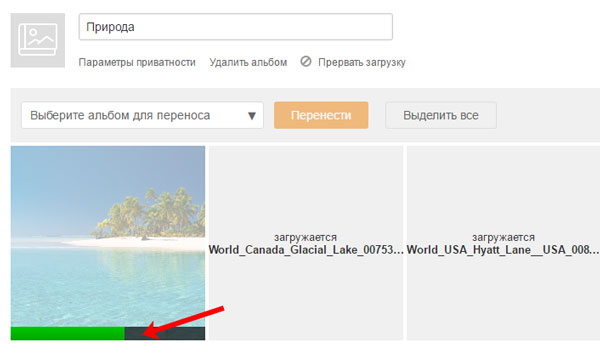 Дочекайтеся, коли вибрані фотографії будуть завантажені.