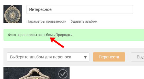 Якщо вам потрібно перенести фотографії з одного альбому в інший, то зробити це також не складно. Для прикладу, перенесемо фотографії з альбому «Цікаве» в «Природа».