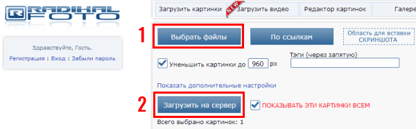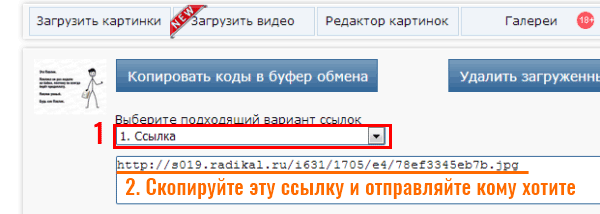 Щоб відправити скріншот посиланням, потрібно залити його на будь фотохостинг. Приміром, на Радикал-Фото. Інструкція гранично проста: