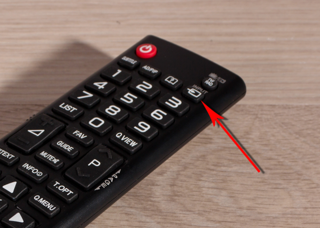 Коректні налаштування чоловік повинен буде встановлювати, як на своєму телевізорі, так і ноутбуку. Мабуть, давайте почнемо з телевізора. Для цього беремо в руки пульт управління, і знаходимо на ньому кнопочку Input. Саме ця кнопка відповідає за джерело сигналу. Після знаходження цієї кнопки, натисніть на неї.