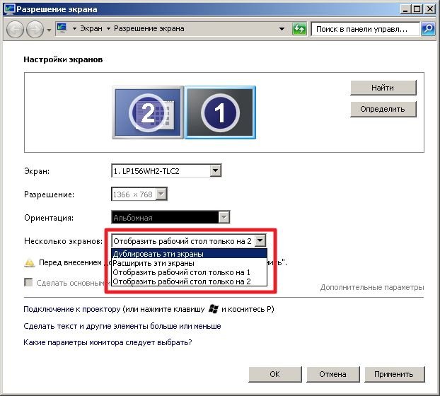 Це меню дозволяє людині не тільки вказувати, як будуть працювати екрани, але і вказати з яким дозволом, вони повинні показувати картинку.