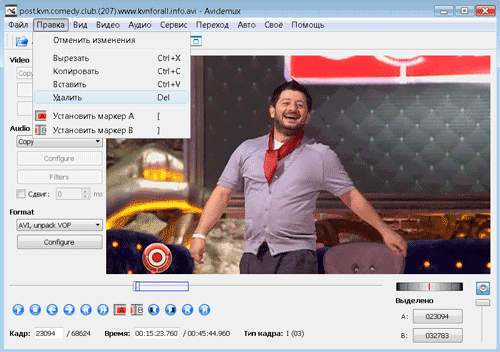 Ще один простий і зручний відеоредактор – Avidemux. Підтримує найбільш поширені формати – avi, mkv, mp4.