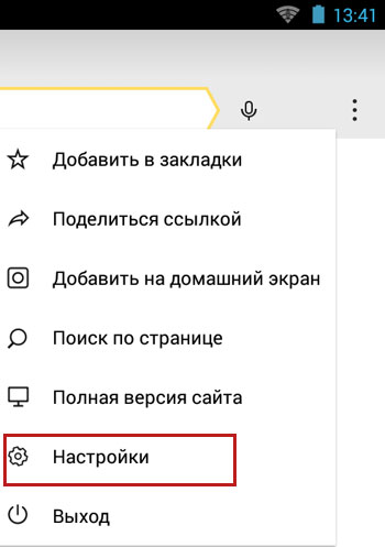Запускаємо цей веб-оглядач, натискаємо на кнопку меню в правому верхньому кутку і з випав списку вибираємо пункт «Налаштування»: