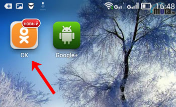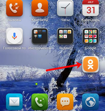 Після завантаження та установки мобільного додатку, на робочому столі Вашого телефону або планшета з’явиться нова іконка з логотипом Однокласників. Клікніть по ній.