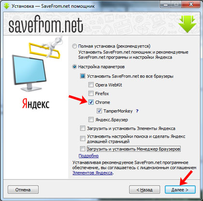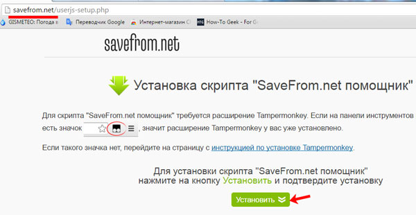Давайте докладніше розглянемо установку з іншого сайту популярного розширення для Google Chrome, і не тільки, SaveFrom.net. Процес буде трохи відрізнятися від описаного вище.