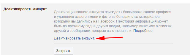 Деактивація аккаунта на фейсбуці через офіційний сайт