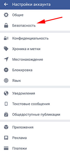 Відкривається меню налаштувань з правого боку екрану. Клацаємо за пунктом «Безпека».