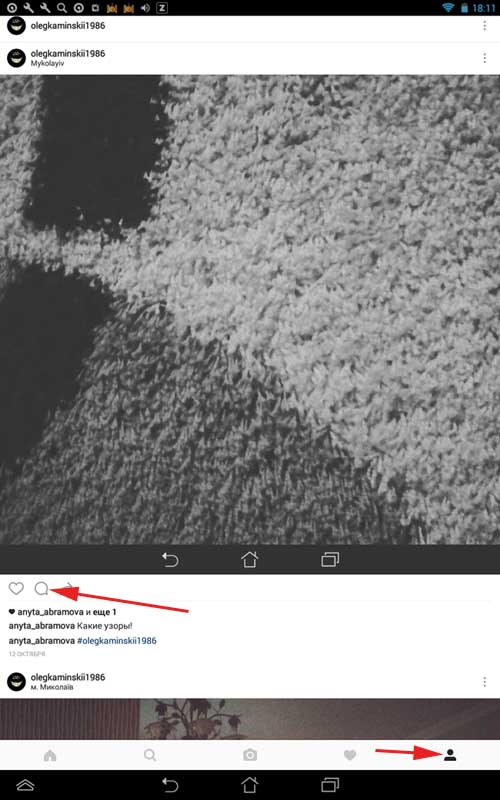 У цьому пункті йтиметься вже про додаток Инстаграма, а не про офіційний сайт. Запускаємо його. Знаходимо фотку, під якою необхідно видалити коментар. Натискаємо на значок коментування під фотографією. (Дивимося на скріншот).