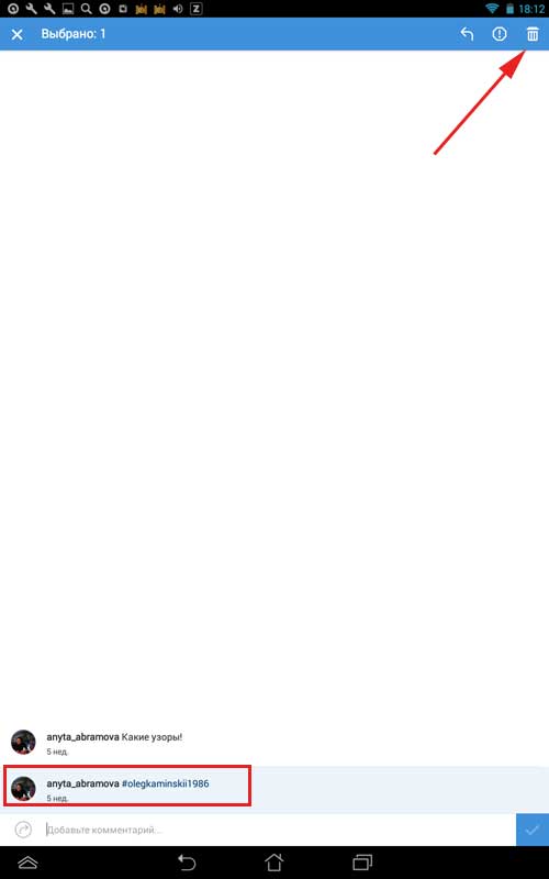 Виділяємо потрібний коментар і тиснемо на значок кошика в правому верхньому куті.