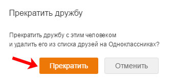З’явиться віконце, що ви збираєтесь видалити вибраного людини зі списку друзів. Натисніть на кнопочку «Припинити».