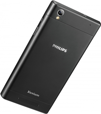 Задня частина смартфона виконана у комбінованому стилі: центральна частина – металева, а зверху і знизу – пластикові вставки, верхня з яких є ще й кришкою. Знявши її, відкривається доступ до двох слотів для sim-карт і слоту для карти пам’яті MicroSD. Акумулятор у Philips Xenium V787 — вбудований, літій-полімерний, ємністю 5000 мАч.