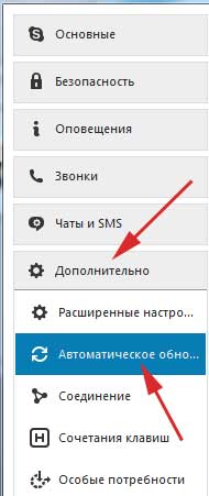 Відключаємо оновлення скайпа в налаштуваннях програми