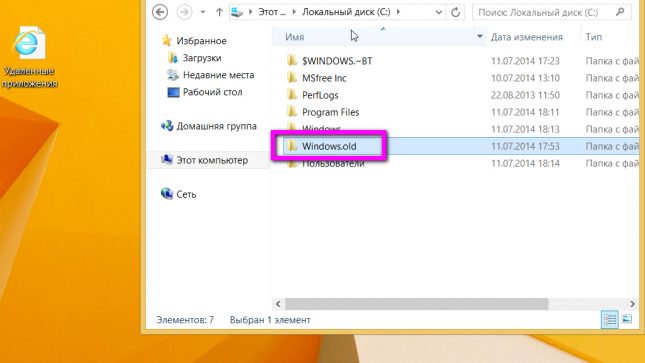 На системному диску присутній тільки оновлена Windows 8/10 а в окрему папку «Windows.old» переміщені збережені з старої версії системи файли.
