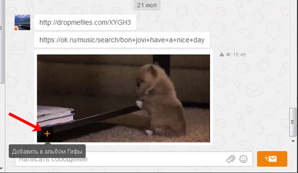 Зараз ми розберемося, що потрібно зробити, якщо вам сподобалась гифка, і ви б хотіли відправити її своєму другові в Однокласниках, щоб він оцінив її. Причому можна просто поділитися записом з гифкой, тоді всі ваші друзі побачать її в стрічці. Ми ж розглянемо, як відправити діфку особистим повідомленням одній людині.