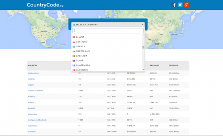 І так переходимо на офіційний сайт countrycode.org. Вибираємо країну, в якій ви хочете отримати номер.