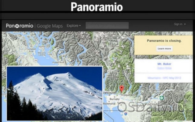 Panoramio, сервіс обміну фотографіями на основі локаційних даних, яку Google купила в 2007, пішов на спочинок 4 листопада, а Google зосередиться на обмін фото всередині Карт.
