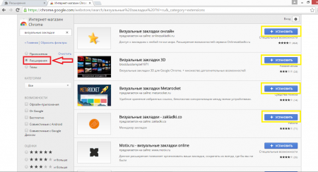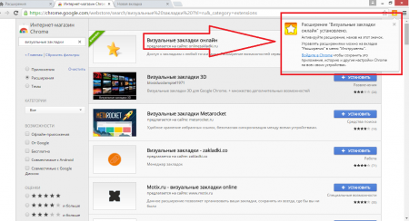Для того, щоб в браузері з’явилися візуальні закладки, необхідно встановити їх, попередньо знайшовши дане розширення в магазині Google.