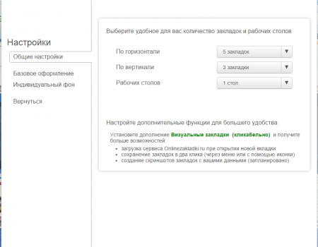 Перша настройка буде загальною, де можна налаштувати кількість закладок, а також їх розташування по горизонталі і вертикалі.