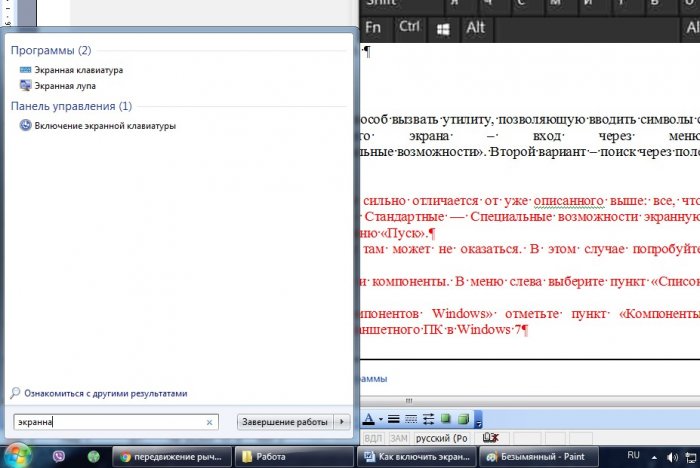 3. Запускаємо «Екранна клавіатура», користуємося.