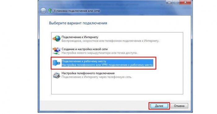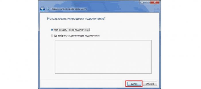 4. У наступному пункті знаходимо «Підключення до віддаленого робочого місця» і переходимо «Далі».
