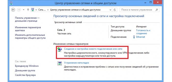 Так, наприклад, щоб потрапити в «Центр управління мережами і загальним доступом» потрібно виконати все те ж, що і на Windows 7, до того ж там є спеціальний пункт «настроїти нове підключення або…».