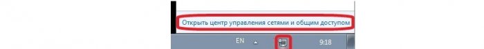 1. Переходимо в «Центр управління мережами і загальним доступом». Натискаємо на панелі швидкого доступу на значок з’єднання і у віконці вибираємо потрібний нам пункт.
