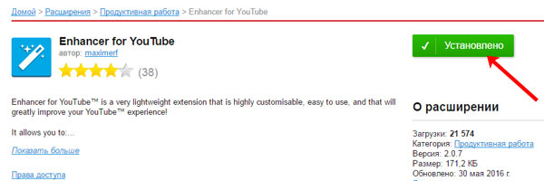Після того, як розширення буде додано в браузер, на кнопочці з’явиться напис «Встановлено».
