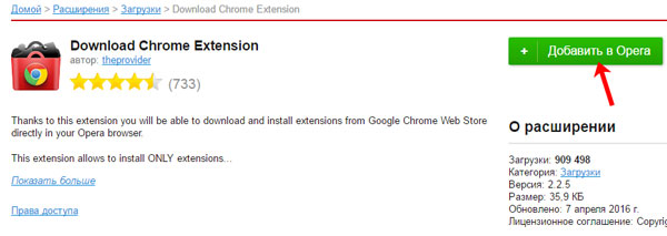 Встановлюємо розширення Download Chrome Extension в Оперу.