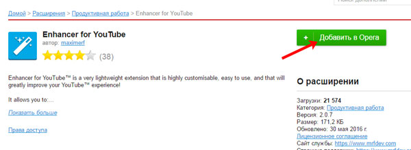 Відкриється віконце з описом розширення і відгуками про нього інших користувачів. Для установки натисніть на кнопочку «Додати в Opera».