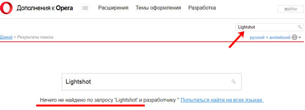 Переконайтеся, що того розширення, яке ви хочете встановити немає в списку додатків для Опери. Скопіюйте його назву і вставити в рядок пошуку. Повинно з’явитися повідомлення, що по вашому запиту нічого не знайдено.