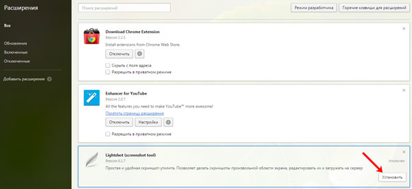 Відкриється нова вкладка, в якій будуть показані всі встановлені розширення у Опері, знайдіть те, яке встановили, і натисніть навпроти нього на кнопочку «Встановити».