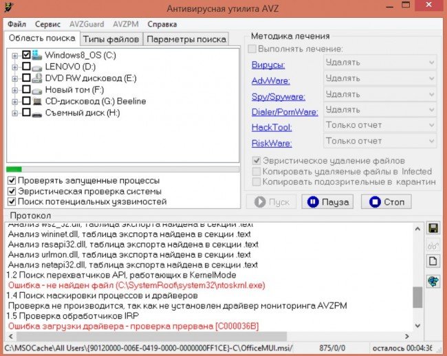 – Вибрати абсолютно всі пункти, і почати сканування.