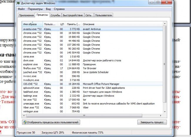 Після завершення видалення вірусних програм, можна зайнятися очищенням процесів, які є зайвими. «Диспетчер завдань» – саме сюди потрібно було перейти, і вибрати вкладку «Процеси», щоб відшукати ті процеси, які зараз працюють, але вони вам не потрібні.