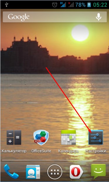 1. Відкриваємо головне меню і заходимо в «Налаштування» (якщо у вас ярлик налаштувань виведений на робочий стіл, то це ще простіше).