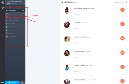 І нарешті RecentUnfollowers — це і є ті користувачі, які нещодавно відписалися від вас.