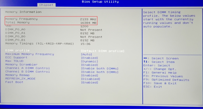 Знайдіть пункт «Memory Information», яка знаходиться у вкладці «Чіпсет» (Chipset).