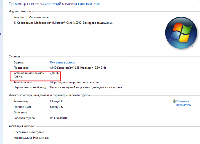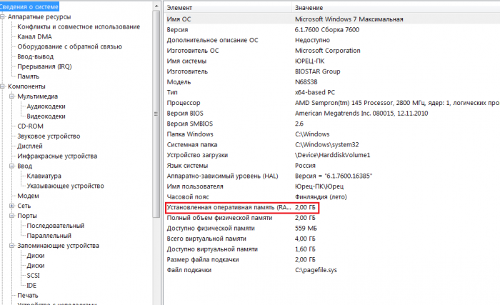 Часто для визначення саме обсягу ОЗП вистачає звичайних засобів Windows.
