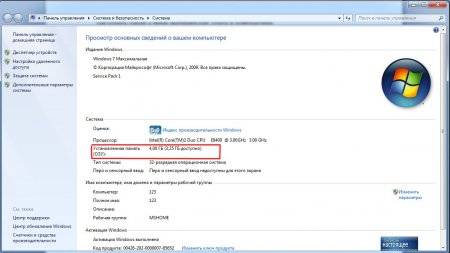 Що б дізнатися, скільки у вас ОЗП (операційну пам’ять) хто не знає, входите в пуск -> на Комп’ютер правою кнопкою і Властивості. Там відкривається властивості комп’ютерами бачимо Управління пам’яті (ОЗП). Так само тут можна побачити такі характеристики як скільки Біт ваш Windows, активована ліцензія Windows, і не тільки.