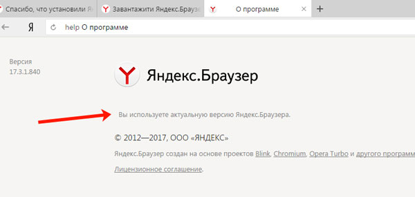Після цього з’явиться напис: «Ви використовуєте актуальну версію Яндекс.Браузера».