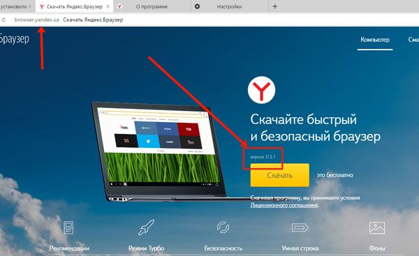 Як її пізнати, ми подивилися, але як зрозуміти, чи є вона актуальною? Щоб переконається, що на пристрої встановлена остання, перейдіть на офіційний сайт: browser.yandex.ru.