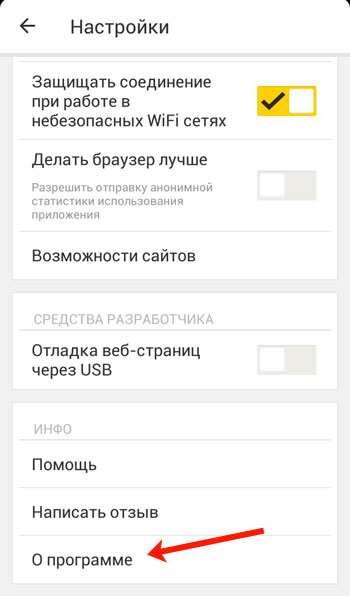 Перегорніть сторінку з настройками в самий низ і виберіть пункт «Про програму».