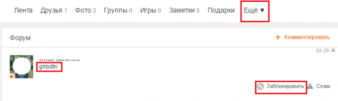 – Наводимо курсор на повідомлення будь-якого користувача. І знаходимо кнопку «спам» і «заблокувати». Якщо «Спам» лише попередить адміністрацію про розсилку спаму, то другий пункт заблокує доступ користувача до вашої сторінці.