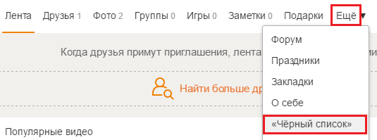 Буває, що в НС випадково можуть потрапити друзі. І це не так добре. Виправляємо цю помилку через пункт «Ще…» і вибираємо пункт «Чорний список». Ви опинитеся в розділі, де показані всі ті користувачі, які опинилися у вашому чорному списку.