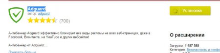 Для прикладу я встановлю розширення, яке блокує рекламу на сайтах – Adguard. Раніше ми вже розглядали цей плагін тільки для браузера Google Chrome, дізнатися детальніше можна тут