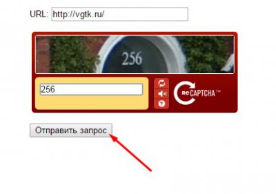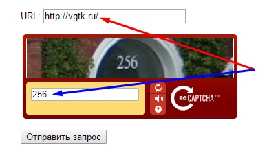 У відповідні поля введіть url-головної сторінки вашого сайту і захисний код (капчку).