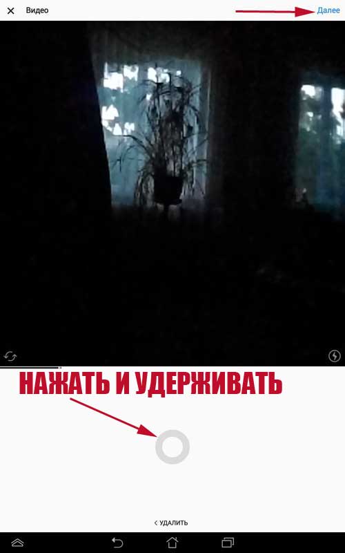 Щоб почати запис ролика натисніть на червоний кружок і утримуйте його. Якщо ви відпустіть гурток, це буде означати паузу запису. Її можна відновити, знову натиснувши на гурток.