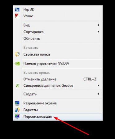 Для початку на робочому столі натисніть праву кнопку миші. З’явиться контекстне меню, в якому вам необхідна команда «Персоналізація».