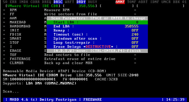 MHDD здатна сканувати поверхню накопичувача, що має інтерфейс IDE при CHS-режимі. Творець мріяв про персональне обладнанні для діагностики, вселяє користувачам довіру.