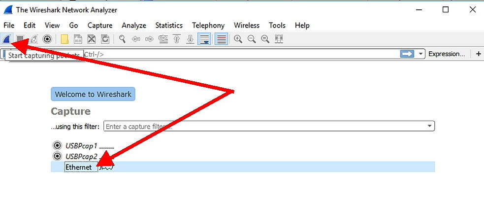 В основному вікні програми буде відображений весь мережевий трафік, у вигляді окремих пакетів. Захоплення пакетів можна зупинити за допомогою кнопки «стоп», яка розташована в лівому верхньому кутку інтерфейсу програми. З допомогою поруч розташованої навігаційної клавіші «Restart current capture» можна, що називається «з нуля» запустити процес обробки вхідного/вихідного трафіку.